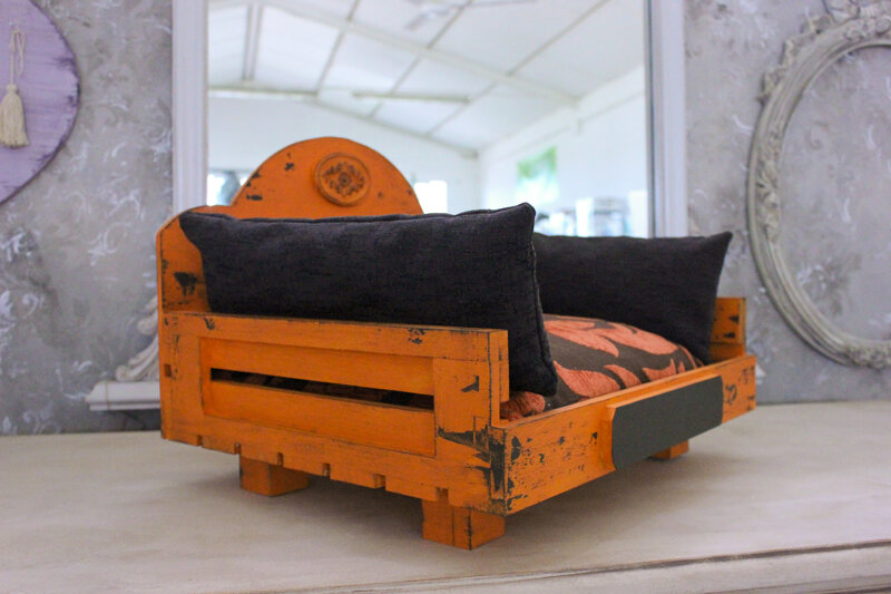 Divanetto in legno realizzato artigianalmente e decorato a mano.
