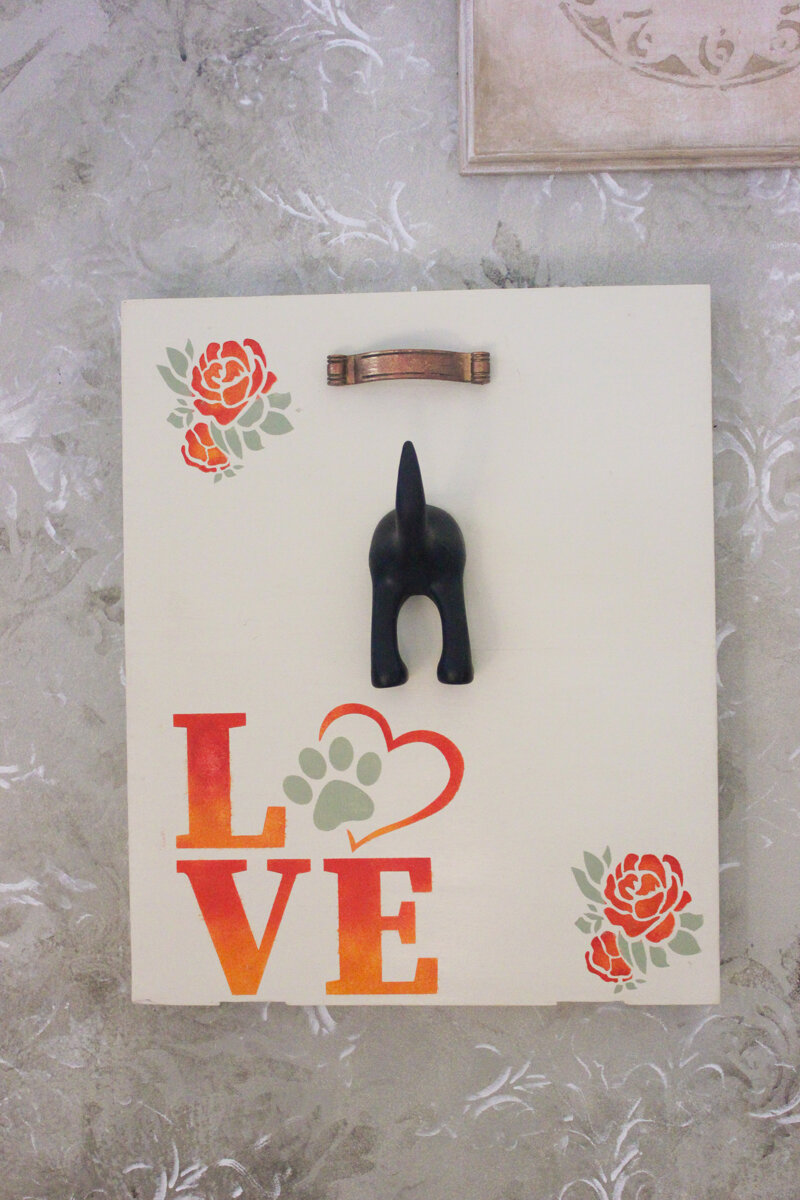 Pannello porta guinzaglio, riciclo creativo antina vintage in legno, decorato a mano. Misure 37x30,5.