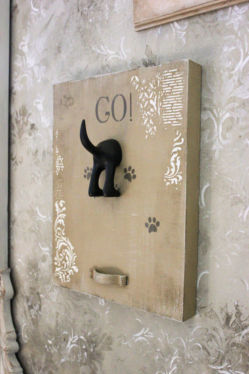 Pannello porta guinzaglio, riciclo creativo antina vintage in legno, decorato a mano. Misure 37x30,5.